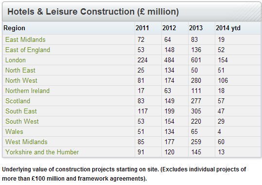 Construction activity in the sector is also set to pick up in Scotland, where hotel & leisure planning approvals doubled to £310 million in July-September, compared to a year ago.